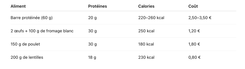4. Barres protéinées vs aliments entiers : comparaison chiffrée